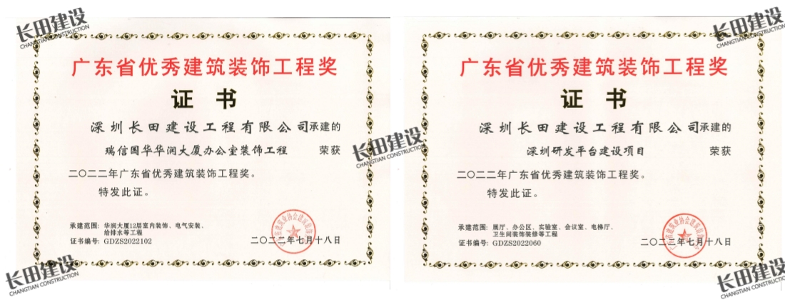 2022年廣東省優秀建筑裝飾工程獎